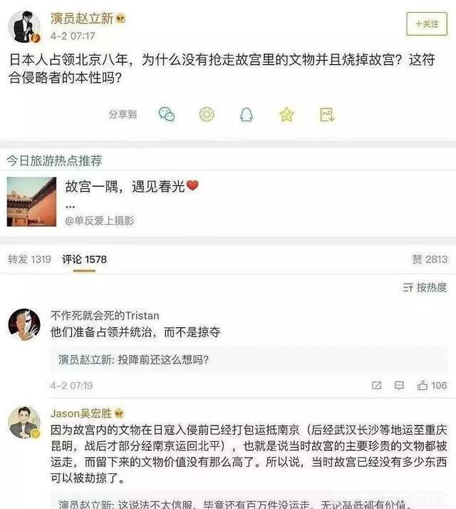 更有甚者他还转发了一篇文章,标题直接是为什么日本不敢用火烧故宫这操作,简直就像是在为自己找理论依据,给网友们的感觉,就更像是替侵略者洗地了。