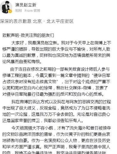 眼看着事业要彻底崩盘,赵立新也坐不住了,凌晨赶紧发了一封道歉信,说是自己表达有歧义,言辞不够严谨。